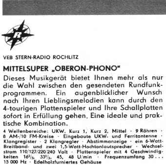Saison 1962 zusammen mit der Stereobox zu sehen. Diese Oberon