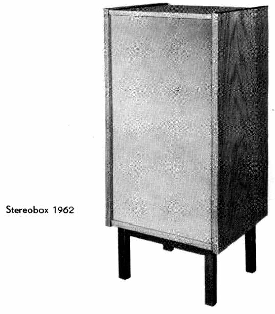 Stereobox 1962 ist als 2-Wege System ausgeführt und mit einem ovalen Breitband-Lautsprecher