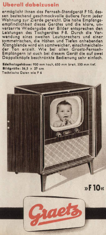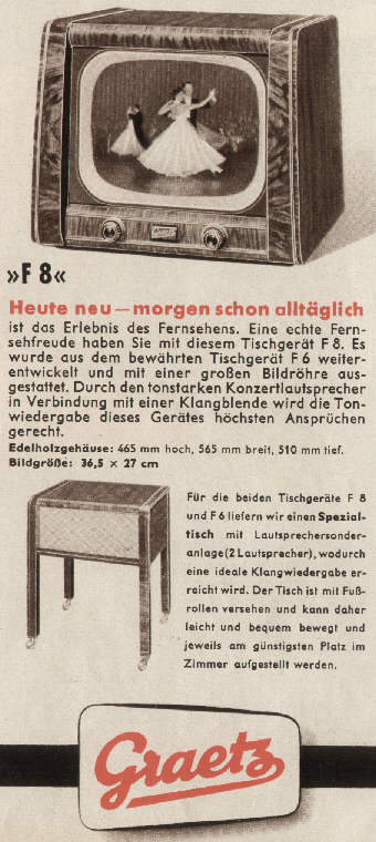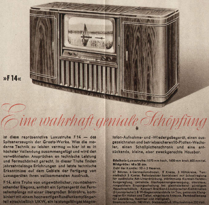 Fernsehen, Modelle der frühen Fernsehgeräte der Marke Graetz: