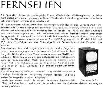 der 50er Jahre Maßstäbe in der deutschen Fernsehgeräteindustrie. Die