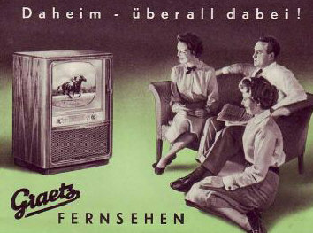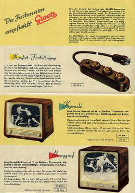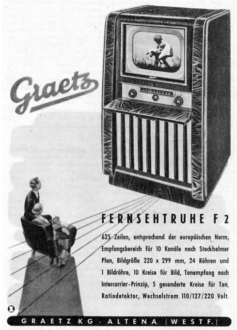 etwa 1952 Zeitungswerbung für die Fernsehtruhe F2 von Graetz