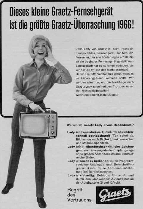 Graetz-Überraschung 1966 - das erste volltransistorierte Kofferfernsehgerät mit 28cm Bild (schwarz / weiß)