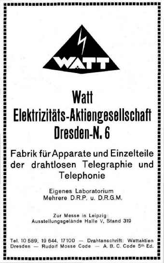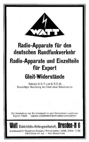 Fritz Graetz übernahm die Geschäftsführung. Es wurden dann Radioapparate für Graetz hergestellt. 1933 wurde "Elektrowatt" aufgelöst und ging in die Graetz Radio GmbH auf. Seit 1929 stellte die Graetz Radio GmbH, eine hundertprozentige Tochter von Ehrich & Graetz, Rundfunkgeräte her.