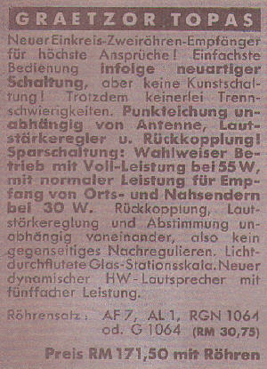 Originalpreis 263,- RM (ohne Röhren) 342,00 RM