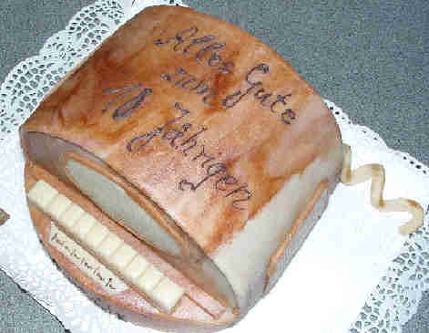 bekamen wir zum Firmenjubiläum ein Marzipanradio - schöne Idee - hat uns