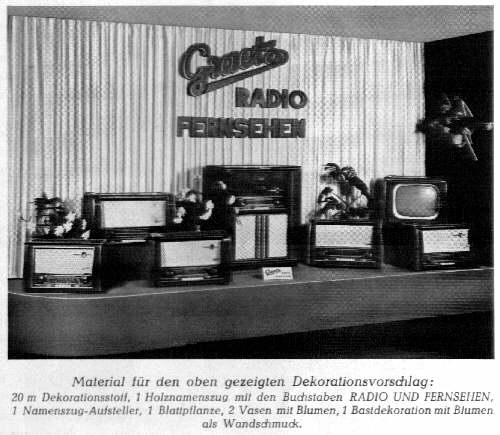 Graetz-Schaufenster Auf dieser Seite möchte ich Schaufenster vorstellen, so wie diese von der Graetz-Werbeabteilung zur Gestaltung vorgeschlagen wurden. In Drucksachen für den Fachhandel wurden diese Ideen präsentiert, um einen möglichst einheitlichen Stil der Gestaltung auf entsprechendem Niveau zu erreichen. 1954 1957 Für Schaufenster oder für die repräsentative Ausstellung wurden extra beleuchtete "Schaukästen" oder andere "Lichtspiele" für die besondere Aufmerksamkeit geschaffen - "Licht lockt Leute!"